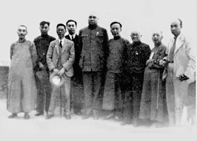 ◆1945年10月19日,周恩来与出席重庆文化界纪念鲁迅逝世九周年大会的文化界人士在一起。左起:叶圣陶、冯雪峰、舒舍予、周恩来、冯玉祥、郭沫若、邵力子、柳亚子、胡风。