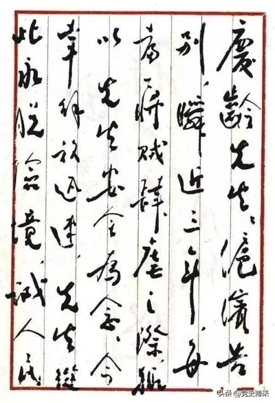 毛主席的书法很有功底,但平日里他给旁人写信通常比较随意,字里行间不时有勾勾划划之处。而这一封写给宋庆龄的信,显然是认真誊写过的,连一个错字、一个墨点都没有,可谓行草的上乘之作。即使作为书法欣赏,也具有极高的美学价值。