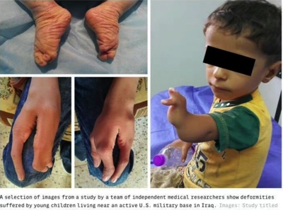 在伊拉克,美军大量使用贫铀武器,产生贫铀粉尘,扩散后被吸入人体,可导致胎儿畸形、癌症率飙升等。