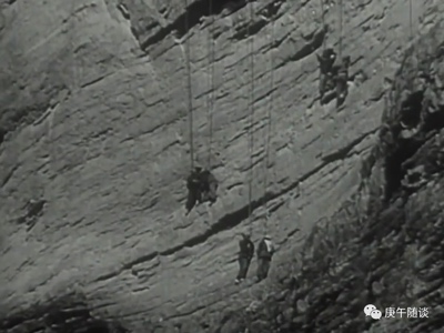 这块地段施工,要从山顶打下一组由三根钢钎组成的绳桩,再由民工腰系绳索,从崖顶下到渠线位置,倚着绝壁分层打出39个20米深的炮眼(开始不是很理解,看了纪录片后,才知道每个炮眼是可以让人进去的那种,一个炮眼里要放上千斤炸药)。