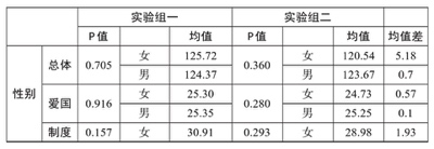 假设二检验。由表3可知,实验组一和实验组二的实验对象在不同维度上的政治情感水平存在差异。并且,实验组一和实验组二在爱国和制度等较高层次理性情感方面的差距非常小,而在社会政治现象等较低层次感性情感方面的差距则比较显著。不过,在对具体政治机制方面的政治情感差距并未呈现出居中的情况。说明假设二被部分证明。