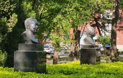 中核集团原子能院中心花园,左边铜像为钱三强,右边为王淦昌