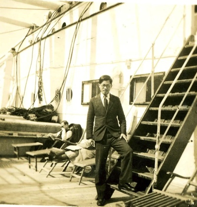 23岁的王淦昌在远赴德国求学的渡轮上