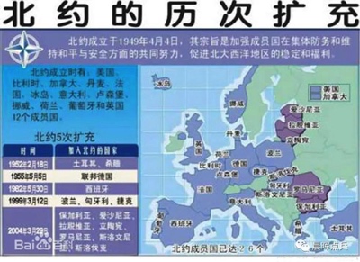 希腊、土耳其于1952年2月18日、联邦德国于1955年5月6日、西班牙于1982年正式加入该组织。之后,北约不断扩大,2020年3月27日,马其顿正式加入北约,成为北约第30个成员国。